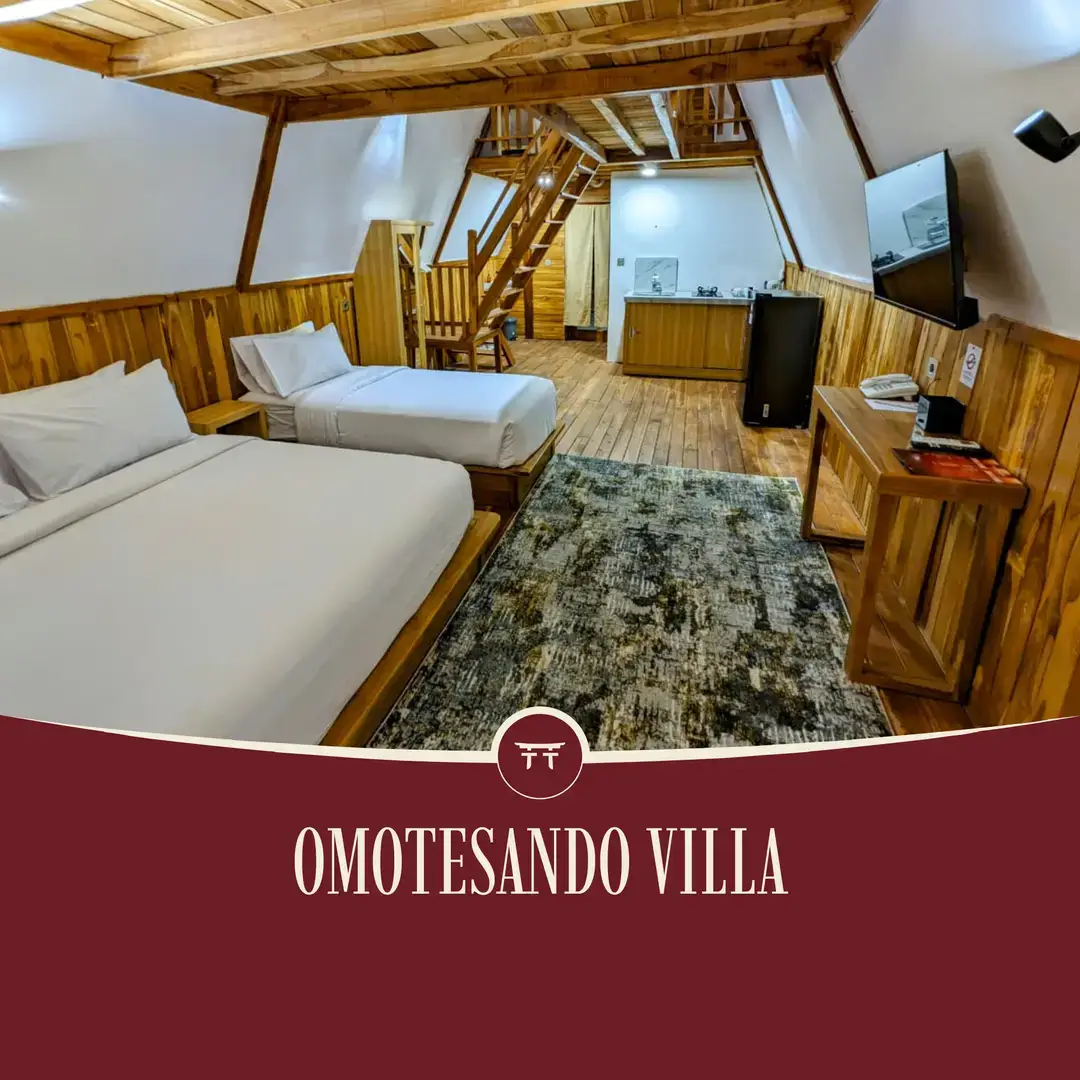 Omotesando Villa features a cozy layout and Japanese-inspired simplicity. This villa offers warm shared spaces and a scenic balcony, making it perfect for families or groups seeking comfort and togetherness.