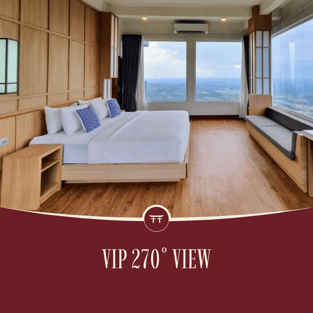VIP 270° View Room blends refined Japanese aesthetics with a sweeping 270° panorama. This exclusive room is designed for couples seeking romance and unforgettable tranquility.